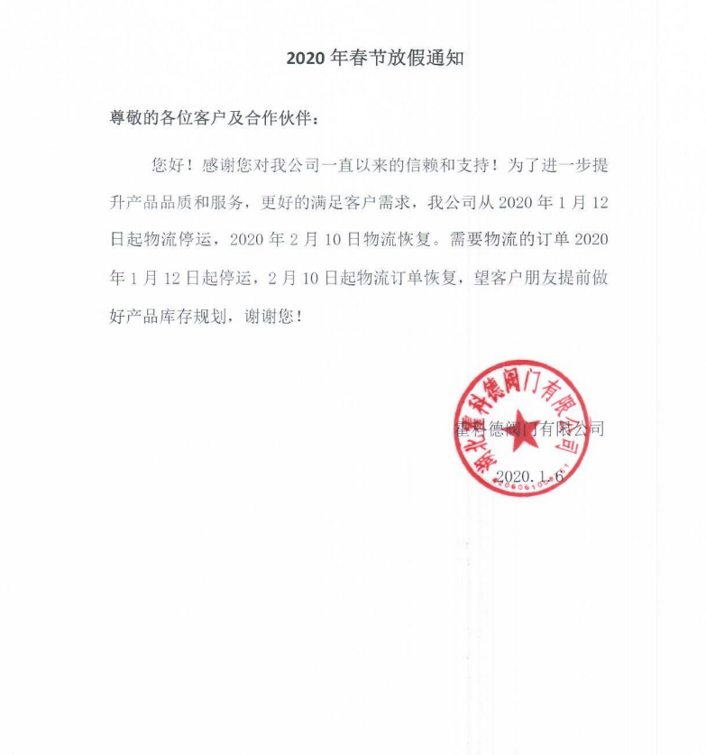 下一篇新聞:2020年霍科德閥門有限公司放假通知